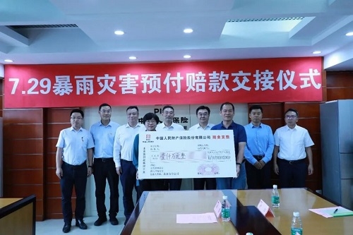 8月8日,集團(tuán)公司與人保財(cái)險(xiǎn)公司舉行北京7.29暴雨災(zāi)害預(yù)付賠款交接儀式,人保財(cái)險(xiǎn)公司提前向北方智能微機(jī)電集團(tuán)有限公司預(yù)付賠款1000萬(wàn)元。8月9日,集團(tuán)公司在涿州召開(kāi)保險(xiǎn)工作協(xié)調(diào)推進(jìn)會(huì),8月10日和11日,人保財(cái)險(xiǎn)公司確定近期將分別向河北亞大汽車塑料制品有限公司和闊丹凌云汽車膠管有限公司預(yù)付賠款1000萬(wàn)元。
